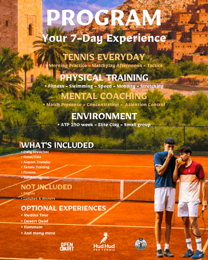 Sluit je aan bij ons Elite Clay Tennis Camp in Marrakech en train samen met gemotiveerde en ambitieuze spelers.